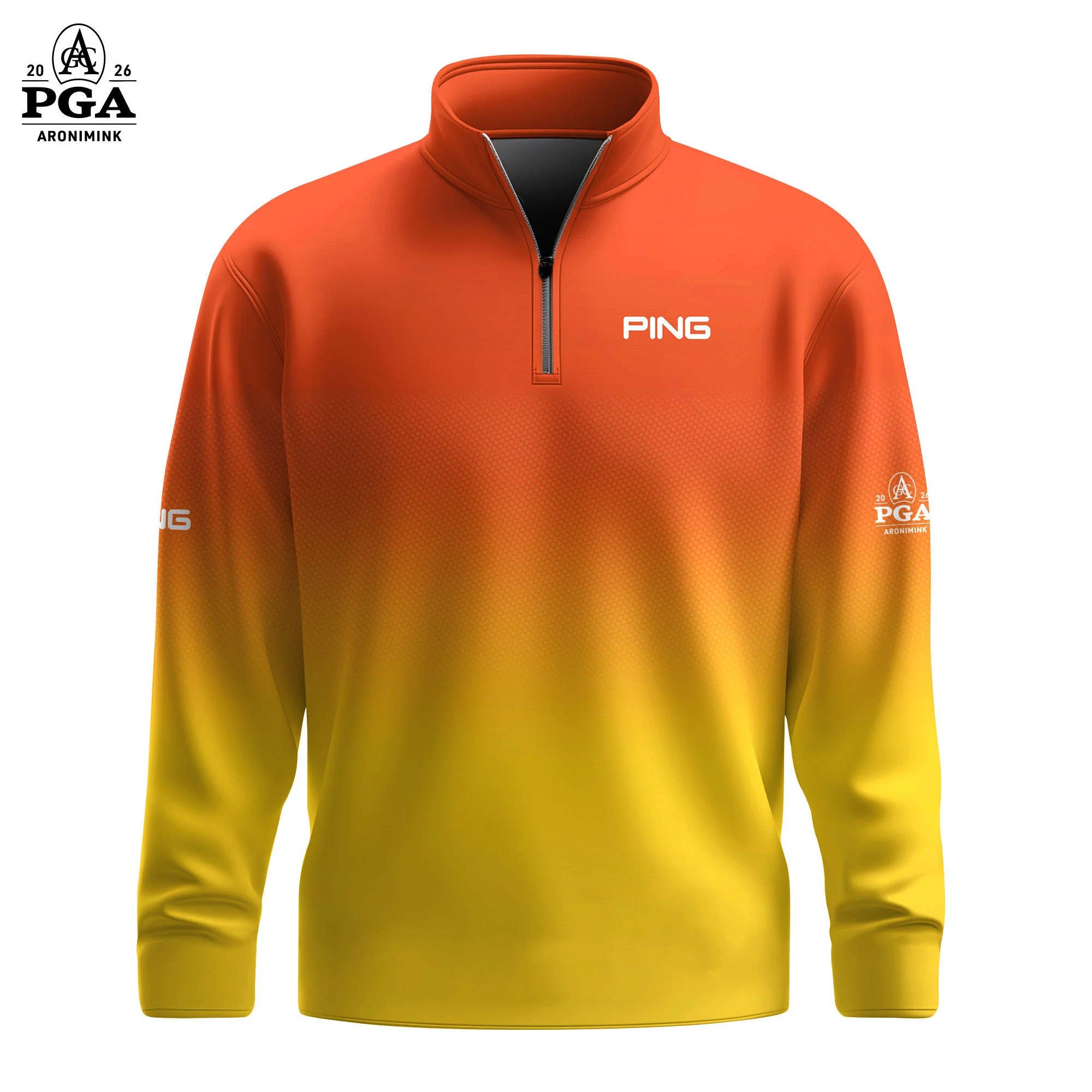 Golf 2026 PGA. Gradient Orange Yellow Pattern AOP Quarter-zip Pullover LDLO310326136