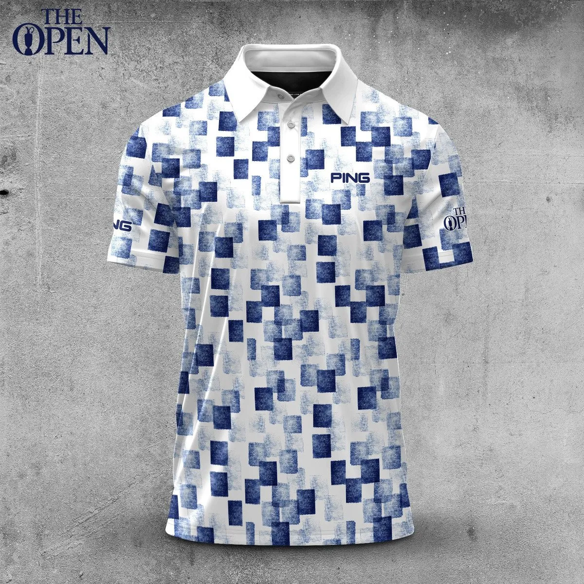 Golf 2026 Open. Blue Square Pattern AOP Polo Shirt LDLO12102512