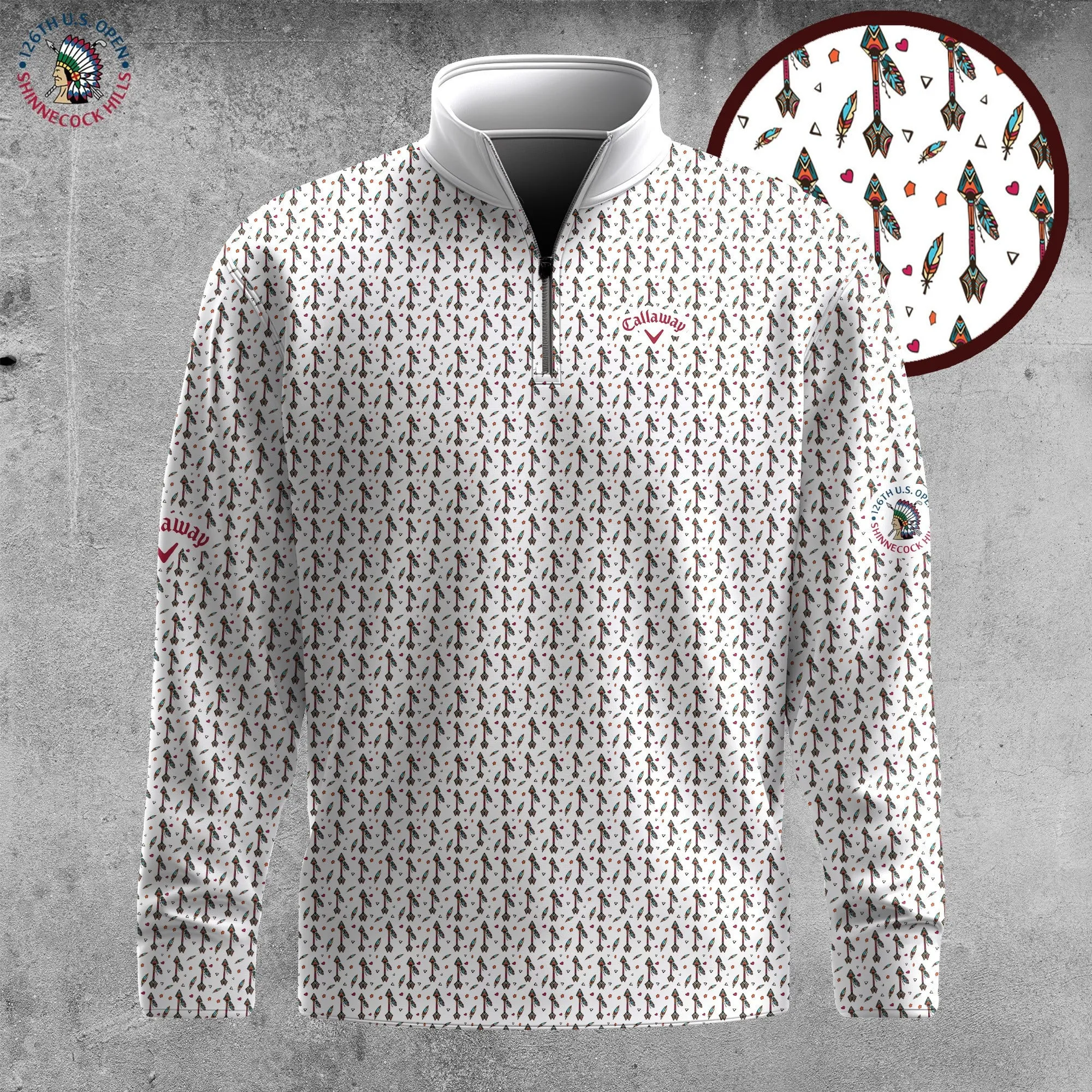 Golf 2026 Open. Tribal Arrow Seamless Pattern AOP Quarter-zip Pullover LDLO26022640