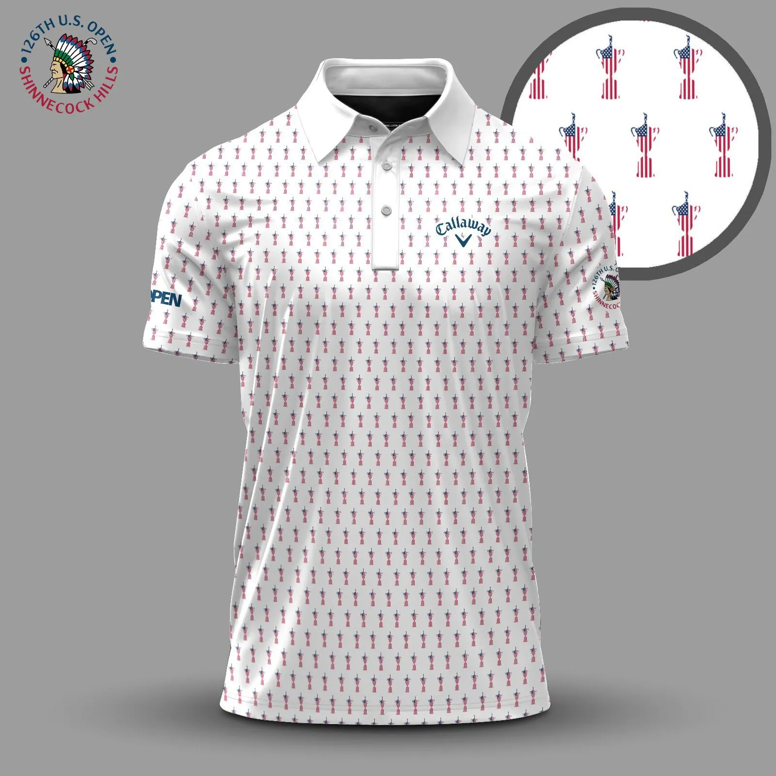 Golf 2026 Open. White US Pattern AOP Polo Shirt LDLO19112555
