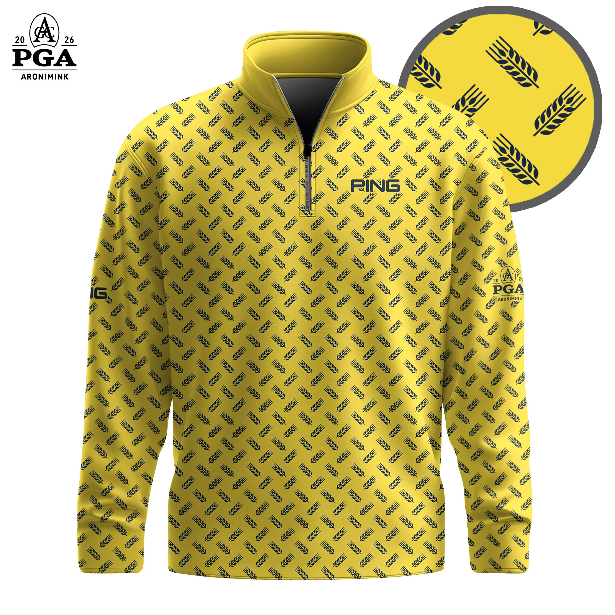 Golf 2026 PGA. Yellow Blue Wheat Pattern AOP Quarter-zip Pullover LDLO31032664