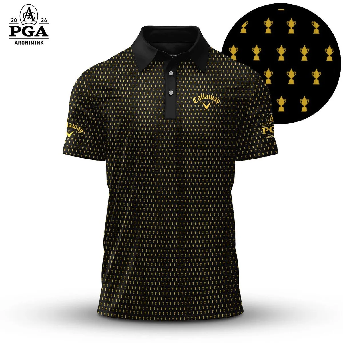 Golf 2026 PGA. Black Yellow Trophy Pattern AOP Polo Shirt LDLO13102523 $59.95 $39.95