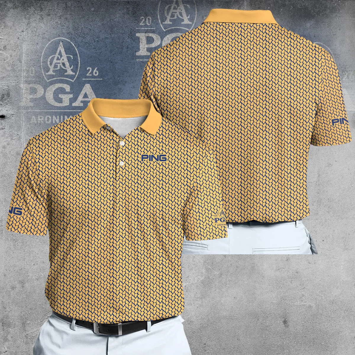 Golf 2026 PGA. Yellow Trophy Pattern AOP Polo Shirt DTL11102518