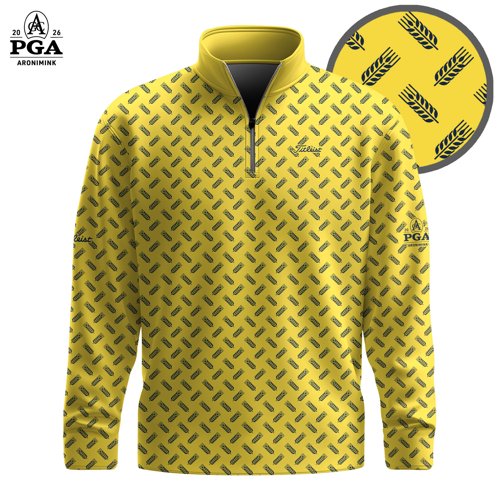 Golf 2026 PGA. Yellow Blue Wheat Pattern AOP Quarter-zip Pullover LDLO31032661